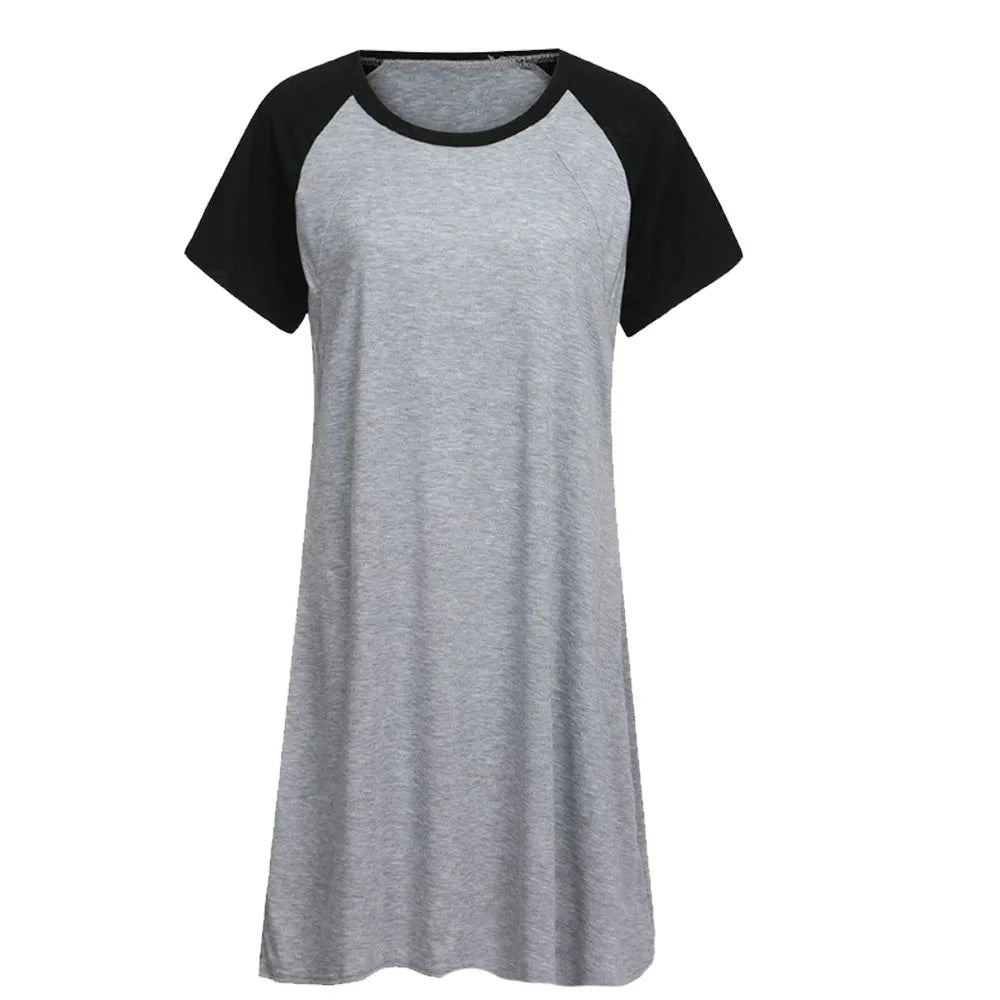 Met ronde hals, korte mouwen en een asymmetrische zoom oogt dit nachthemd niet alleen praktisch, maar ook modieus. Geschikt als nachtkleding, kraamjurk of casual loungejurk.
